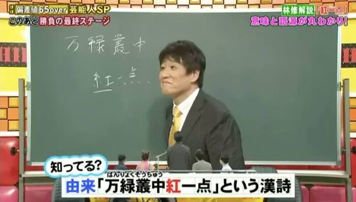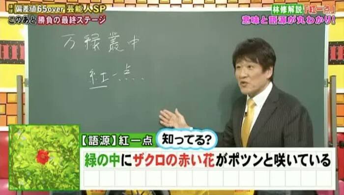 「紅一点」という言葉を答える問題で、言葉の意味と由来を教えてくれたのは、林修先生だ。