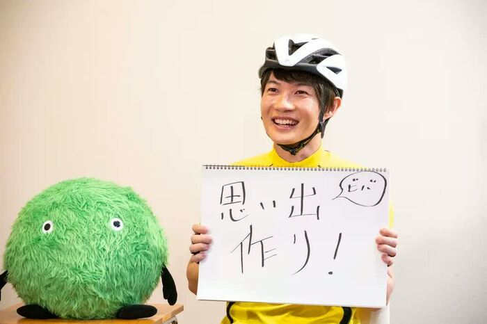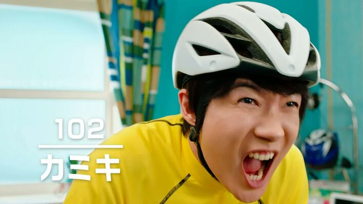 鮮やかなサイクリングウェアに身を包み、撮影に臨んだ神木は、部屋のセットに並ぶサイクリンググッズに興味津々で、合間の時間には部屋をぐるりと監察。