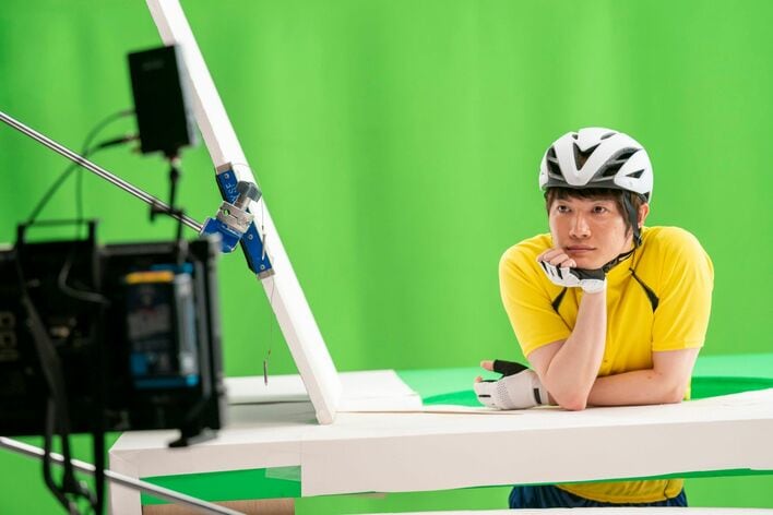 また、サイクリングマシンを漕ぐシーンでは、マシンと連動してモニター画面に映し出された景色も一緒に動く仕組みになっており、神木は「すごい!」と大興奮。本番前からマシンを漕いで遊ぶ場面もあったそう。