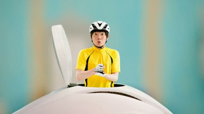香川照之の出演でも話題になった、個性豊かな住人たちが暮らす「スーモハウス」シリーズの最新作で、神木は、ハイテンションでサイクリングマシンを漕ぐ熱血青年を演じている。