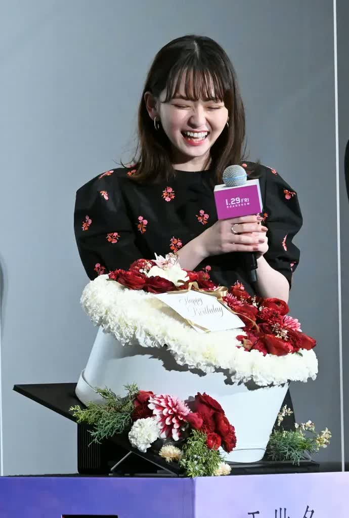 会見の終盤には、1月8日(金)に20歳の誕生日を迎える山田を、岩田&新田がドッキリでお祝い。「せーの!お誕生日おめでとう!」という2人のかけ声とともに、フラワーケーキが登場すると、山田は「うれしい!かわいい!」と、はじけるような笑顔を見せる。