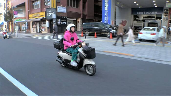 そんな多忙を極める彼女の移動手段は、いつも原付。タクシーを呼ぶ時間さえもったいないと、各現場を原付で移動している。