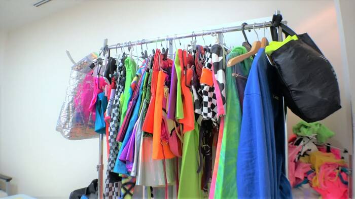ある日、バラエティ番組の収録のためスタジオ入りしたフワちゃん。楽屋に入ると、スタイリストが用意した衣装を確認し、「下を単色か銀にするんだったら、何か1個柄のやつ“積みたい”かも」と要望を出しながら、自分好みのコーディネートを探る。