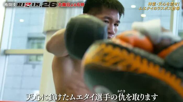 今まで天心選手と闘ったムエタイ選手は6人で全敗。苦渋をなめさせられたラスボスが、インタビューで不敵な笑みをうかべながら天心にKO宣言する。