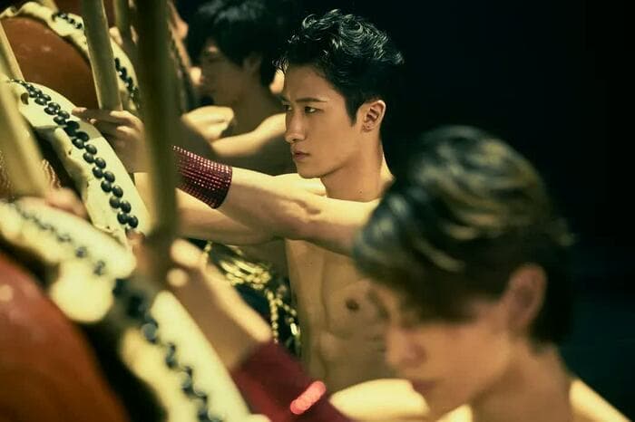「滝沢歌舞伎 ZERO 2020 The Movie」最大の見せ場の一つ、「腹筋太鼓」も本番を迎えた。上半身裸で、腹筋で体を支え続けながら太鼓を打つ、高い身体性をもってもなおギリギリまで追い込まれる演目だ。さらに舞台と違い、映画撮影では何度もテイクを重ねなければならない。バチを強く握りしめ打ち続けるメンバーの指の皮は剥げ、強い痛みが走る。それでも懸命にたたき続ける。映像化ならではの過酷な試練に、9人は限界まで力を振りしぼり挑んだ。「滝沢歌舞伎」について聞かれた渡辺翔太は「学校みたいなもの。パフォーマンス面での成長も滝沢歌舞伎だと思いますし、人としての部分も、全部いっぺんに学べる場所」と話した。