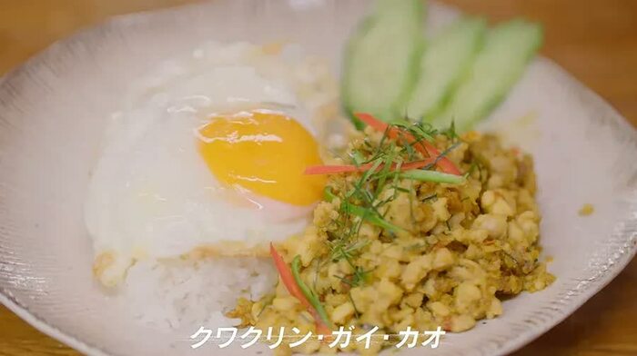 オンさん:クワクリン・ガイ・カオはタイ南部の料理です。ガパオとは違う料理です。とても風味豊かでヘルシーなのが特徴です。