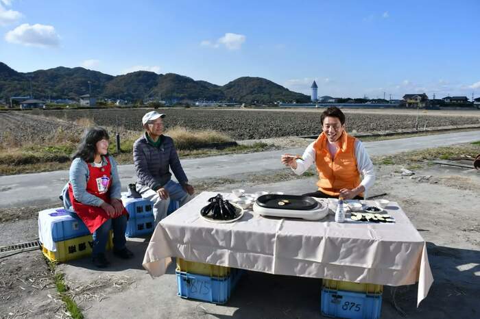 浩正さんは冬の日差しでハウス栽培することで、ゆっくりと陽が注ぎ、皮が薄く柔らかいなすが育つと説明。松岡は「生で食べたときと、焼いたときと、歯ごたえがあんまり変わらない」と、再度、皮の柔らかさへの驚きを示すと「僕にとってはおいしさもアイディアも言うこと“なす”」と、笑顔で締めた。