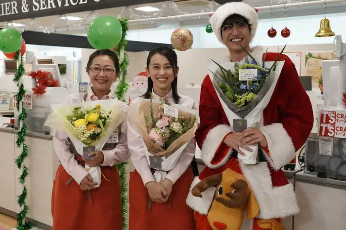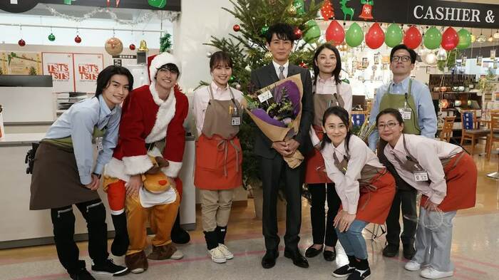 まだ撮影を残す有村と共に、最後は全員で記念写真を撮影した。クリスマスイヴに起きる幸せの連鎖は、日南子だけではなく、若手従業員の省吾(那須)やベテラン従業員の臼井(スミ)にまで及ぶ!?桃子の職場で起きる奇跡から目が離せない。