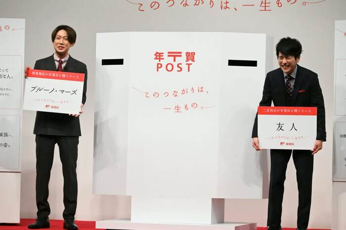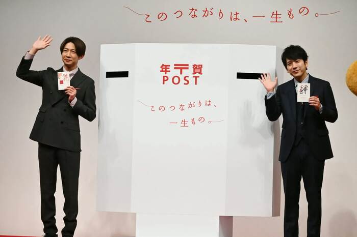 12月15日(火)、「2021年用年賀状 受付開始セレモニー」が行われ、嵐の相葉雅紀と二宮和也が出席した。