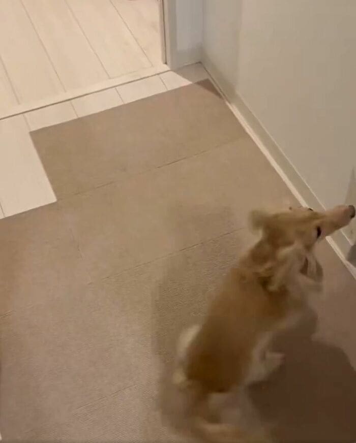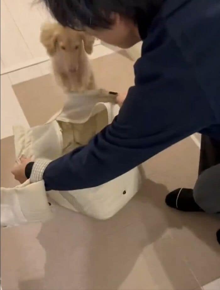 今回話題になっているのは、「うちの子はお出かけの準備が爆速で終わるんですけど、この一瞬がほんとに可愛い」というコメントと共に投稿された1本の動画。