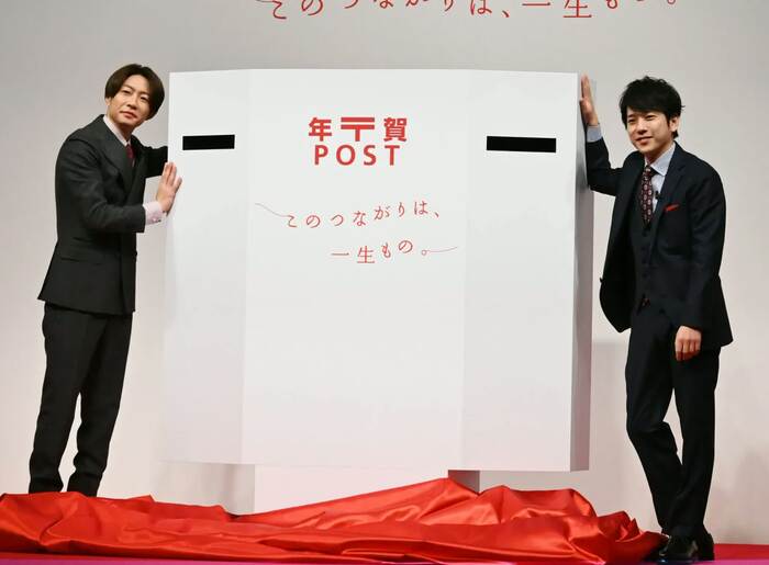 12月15日(火)、「2021年用年賀状 受付開始セレモニー」が行われ、嵐の相葉雅紀と二宮和也が出席した。