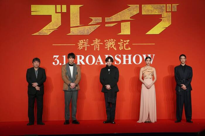 12月14日(月)、映画「ブレイブ –群青戦記-」の製作報告会見が行われ、新田真剣佑、山崎紘菜、鈴木伸之(劇団EXILE)、渡邊圭祐、本広克行監督が登壇した。