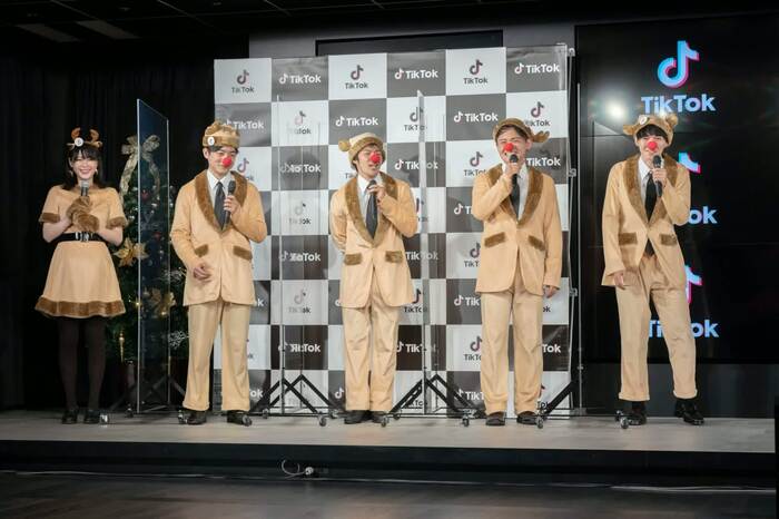 またイベント中盤には、“サンタ隊”として、TikTokクリエイターの伊吹とよへ、内山さん、修一朗、神堂きょうかの5人がトナカイの格好をして登場。