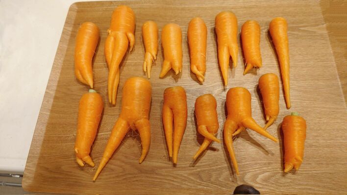 くーさんママさんは元々おもしろい形をした野菜が好きで、今までにナスやキュウリ、トマト、大根は見かけたことがあるそうですが、ニンジンは出荷時にはじかれてしまうのか、なかなか珍しいそう。