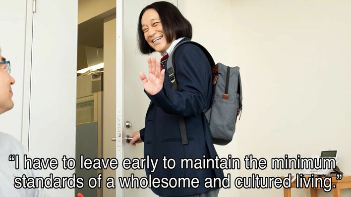 “I have to leave early to maintain the minimum standards of a wholesome and cultured living.” The new employee of the TV station said and went home.