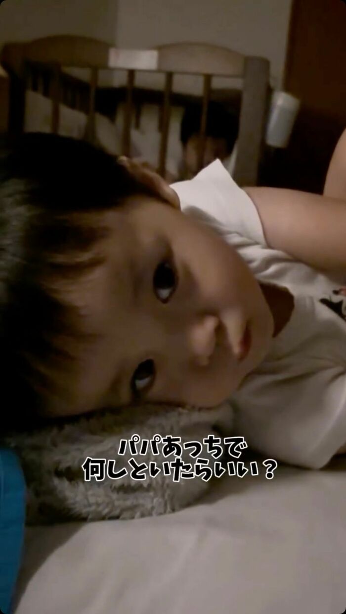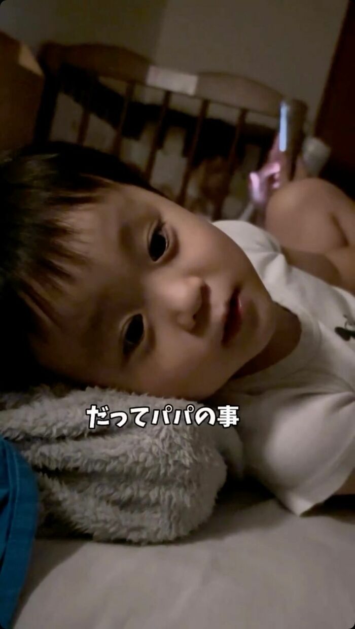 動画を撮影しているパパのことをまっすぐ見つめながら…「ママと寝たいからパパ、あっち行って?」とストレートに言い放ちます!