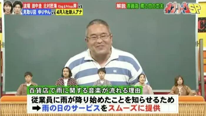 東京都の年間降水量に関する問題では、百貨店が行っている雨の日の工夫について地理担当の村瀬哲史先生が教えてくれた。