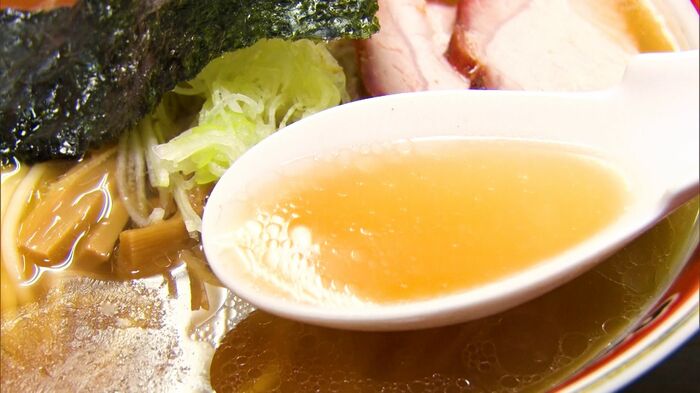 絶品スープにからむ、モチモチした歯ごたえと、つるっとした喉ごしを味わうことができます。