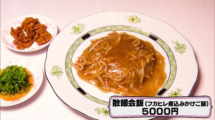 松本さんのおすすめは「散翅会飯(フカヒレ煮込みかけご飯)」(5000円)。