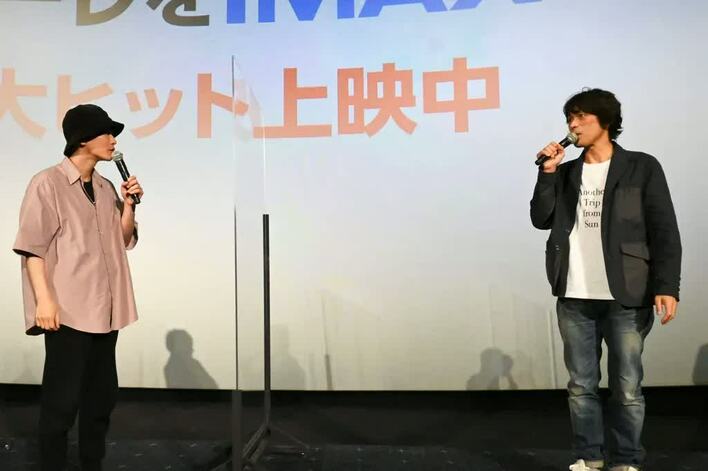佐藤は登壇すると、「絶対、公開されたら『The Beginning』をIMAX®で見たいなと思っていて。そうしたら、江口さんとたまたまスケジュールが合って」と、江口と“たまたま”映画を見ていたことを強調。