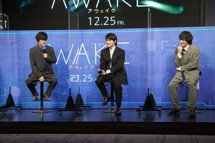 12月8日(火)、映画「AWAKE」の完成報告会見が行われ、吉沢亮、若葉竜也、落合モトキ、山田篤宏監督が登壇した。