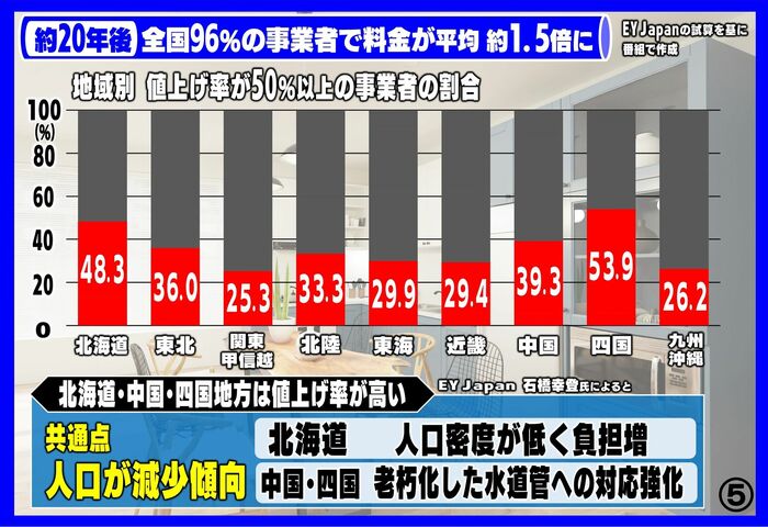約20年後には全国96%の事業者で、今の料金から平均で約1.5倍上がるとみられています。これはもう避けられない状況。