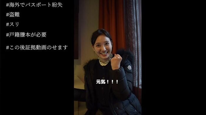 楽しい思い出になるかと思いきや…公式YouTubeにて「海外でスリされました」というタイトルで動画を更新。冒頭ではダウンジャケット姿の兒玉さんがカメラに向かって「パスポートっていうか財布盗られました」と被害に遭ったことを明かしました。