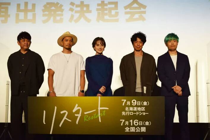 6月21日(月)、映画「リスタート」の舞台挨拶が行われ、EMILY、SWAY、松田大輔、庄司智春、品川ヒロシ監督が登壇した。