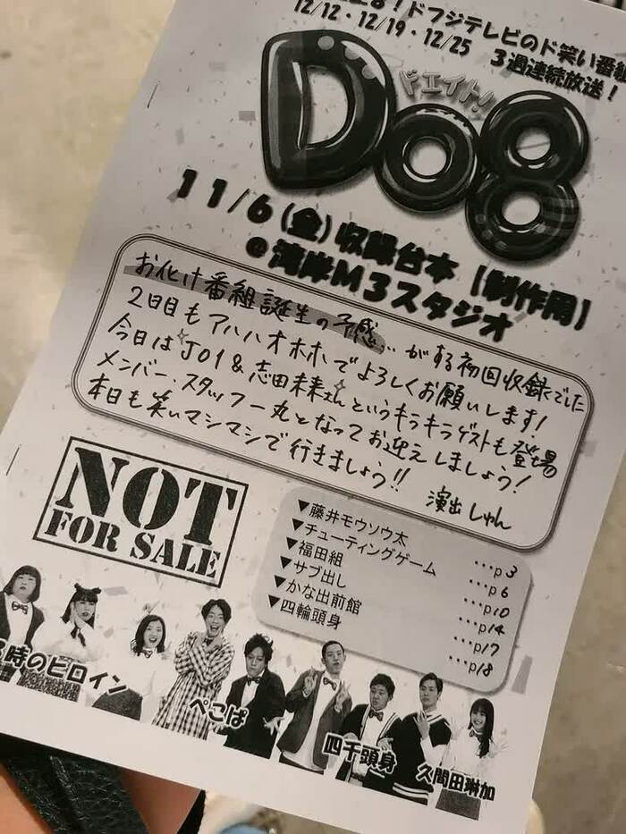 本番がスタートし、マネージャー役の松陰寺太勇(ぺこぱ)に付き添われた志田が入室。どこから手に入れたのか、小福田監督に自身のプライベート情報を明かされ、動揺のあまり笑ってしまう志田だった。その後、志田の熱演でDo8メンバーがテスト以上のビリビリを体感していたので、その表情はオンエアでしっかりチェックしておきたい。