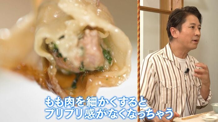 谷原:もも肉をあんまり細かくするとプリプリ感がなくなっちゃうから、包みにくさとプリプリ感のバランスがね。