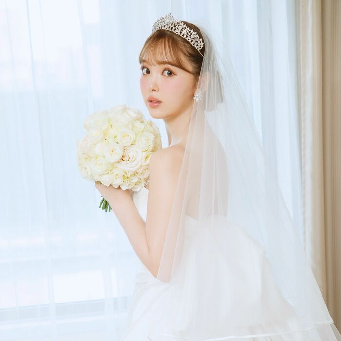 結婚式の写真では、ウェディングドレス姿に茶髪の姿でしたが…