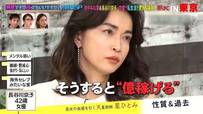 6月23日(水)、フジテレビでは『突然ですが占ってもいいですか?SP』が放送され、田中みな実と長谷川京子が星ひとみによって占われた。