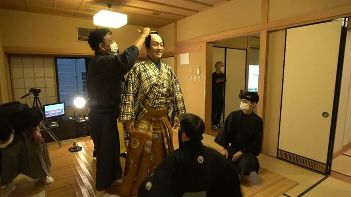 取材カメラは、中村屋一門の協力を得て、定点カメラやZoom、さらには自撮り映像などを駆使し、プライベート映像も含む、年末12月の歌舞伎座公演までを追う。