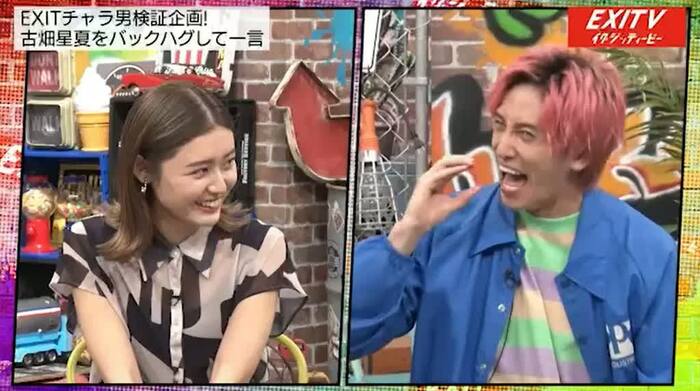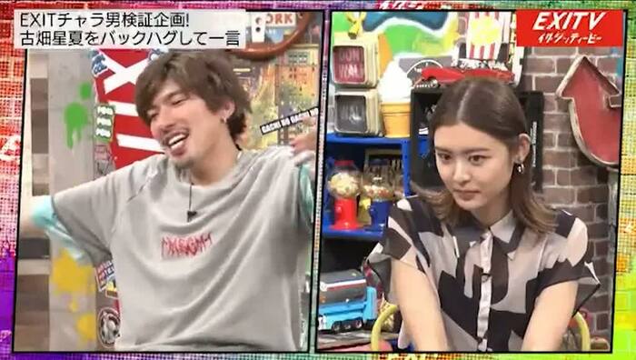 そして、EXITが古畑に恋人シチュエーション(バックハグ)を再現し、古畑にEXITはビジネスチャラ男か?本当のチャラ男か?を判定してもらうことに。