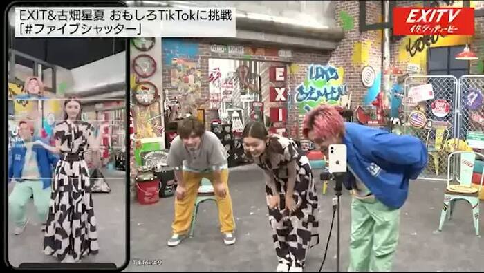 番組後半では、最近「TikTok」にハマっているという古畑と、「#ファイブシャッター」という5回のシャッターで面白写真を撮影できる機能に挑戦したり、YouTubeでのコラボを提案し合って盛り上がっていた。
