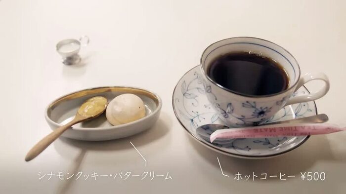 ふと漂うドリップコーヒーの香りに、そこが喫茶店であるということを思い出す純平。食後に出されたセットのコーヒーには、サービスでシナモンクッキーとバタークリームがついてくるのがうれしい。