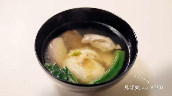 餅の焼ける匂いでリラックスモードに突入した純平は、思わずウトウト。運ばれてきたお椀の蓋を開ければ、「これは絶対美味しい!」と確信せざるを得ないビジュアルの鳥雑煮がお目見え。