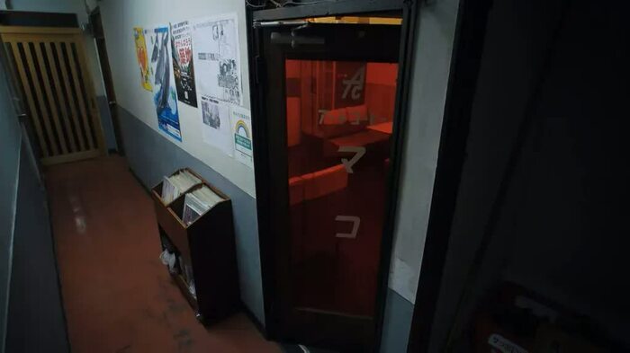 「珈琲・お雑煮」の異色の組み合わせに戸惑いを見せつつ、仄暗い雑居ビルに唯一光る看板に導かれるように、歩を進めていく。「なんか…ゾワゾワする」と、恐る恐る階段を上ると、そこには“ディープ感”満載の赤い扉が。