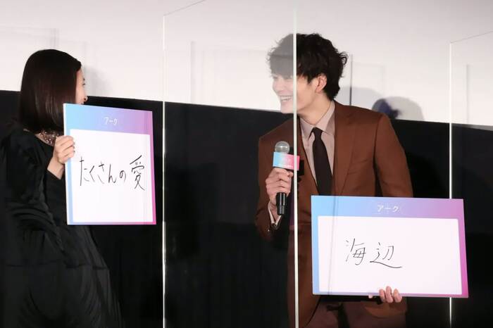 芳根は「たくさんの愛」と書き、「この作品は、たくさんの愛情、友情が描かれていて。何よりステキだなと思ったのは、キャスト、スタッフの皆さんが石川さんへの愛があって、石川さんは作品に向けてのたくさんの愛があって。現場では、たくさんの愛を感じたので、心が温まっていただけたらうしいです」と爽やかな笑み。