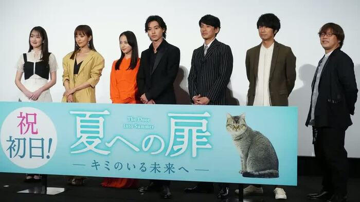 6月25日(金)、山﨑賢人が主演を務める映画「夏への扉-キミのいる未来へ-」の初日舞台挨拶が行われ、山﨑が共演の清原果耶、藤木直人、夏菜、眞島秀和、高梨臨、三木孝浩監督と共に出席した。