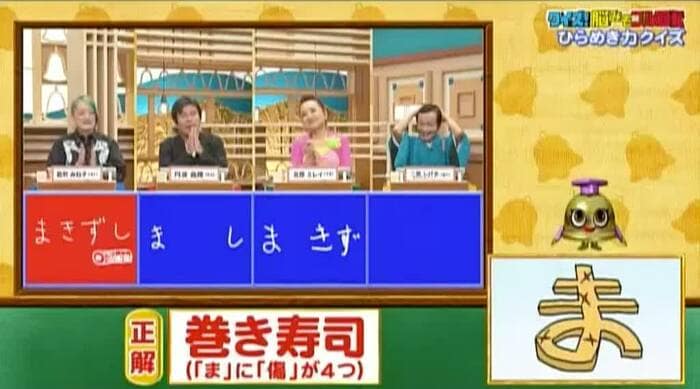正解は「巻き寿司(『ま』に『傷』が4つ)」。能町1人が正解!