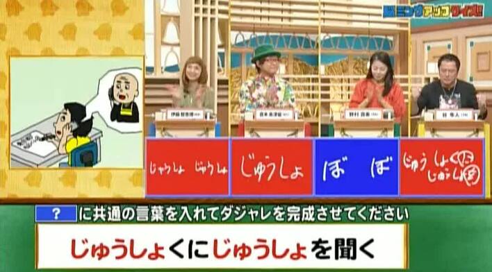 正解は「じゅうしょ(住職に住所を聞く)」。伊藤、倉本、谷の3人が正解!