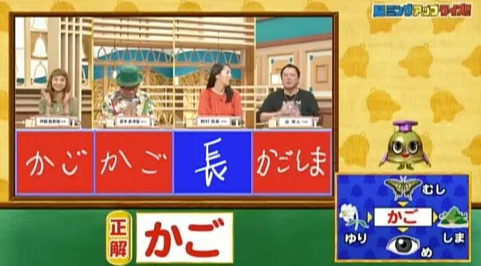 正解は「かご(ゆりかご・虫かご・鹿児島・かごめ)」。またまた伊藤、倉本、谷の3人が正解!