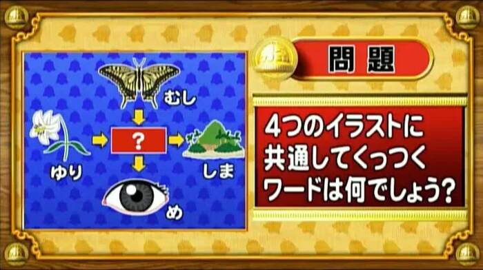 次は、くっつきワードの問題。次の4つのイラストに共通してくっつくワードを答えよ!