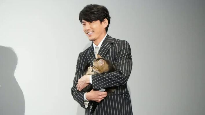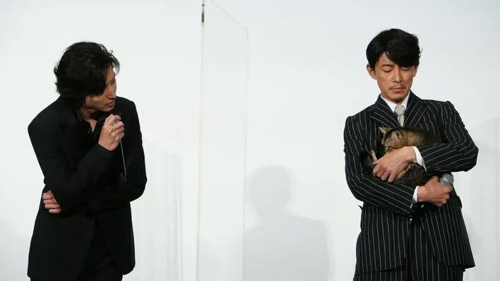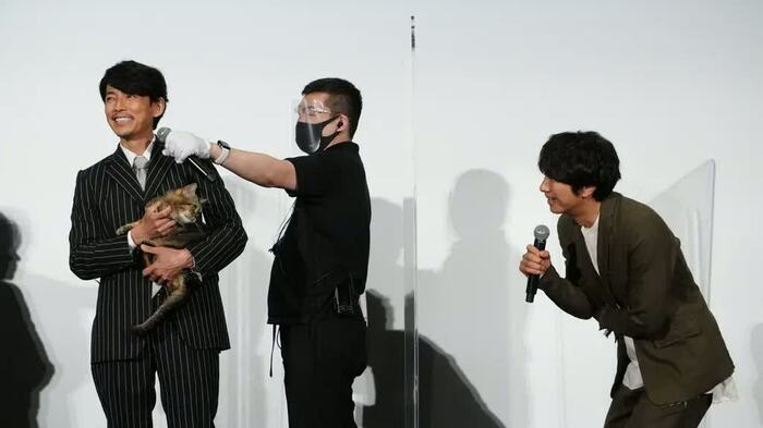 イベント中盤には、劇中で山﨑演じる宗一郎の相棒猫・ピートが藤木に抱えられて登場。