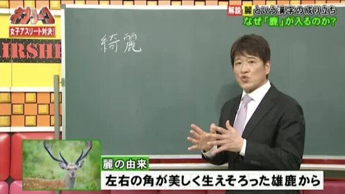 「綺麗(きれい)」という漢字を書く問題では、なぜ綺麗の「麗」に「鹿」という字が入っているのか、林先生が教えてくれた。