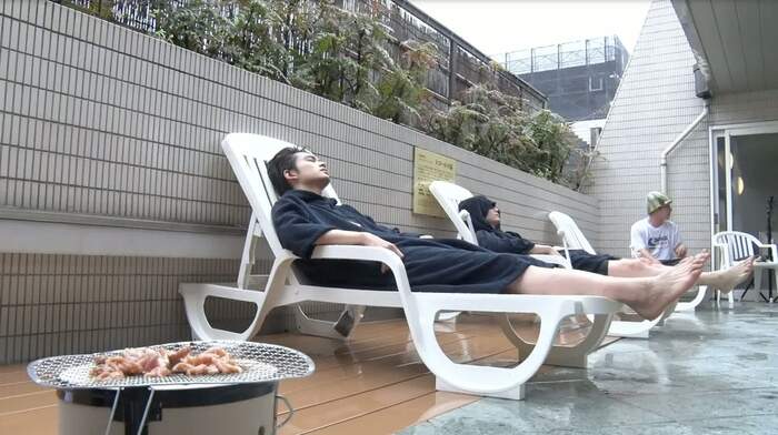 水風呂に入った後、外気浴のため屋外へ出るものの、あいにくの雨。大倉は「“無”になられへん」とこぼすが、北村は気にする様子もなく「今、こう回ってます」と、指で宙をぐるぐる回しながら無の境地へ達したことを表現。大倉は「ととのった人っておもしろい」と吹き出した。