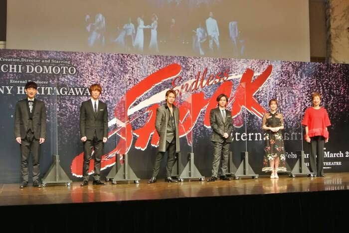 12月1日(火)、KinKi Kidsの堂本光一が作・構成・演出・主演を務める「Endless SHOCK-Eternal-」の製作発表記者会見が行われ、光一のほか、上田竜也(KAT-TUN)、越岡裕貴・松崎祐介(ふぉ~ゆ~)、梅田彩佳、前田美波里が出席した。