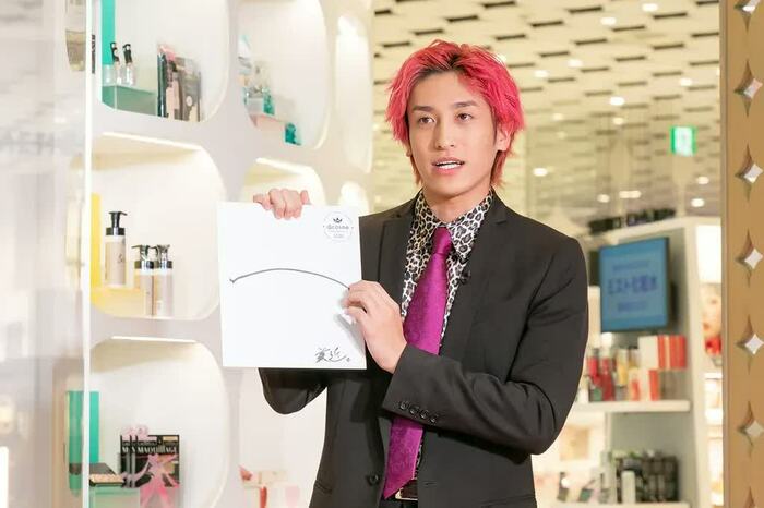 「コスメっていうのは、食事で例えると、朝晩のご飯のような感じ。美を作るために欠かせない土台のようなもの」と語り、「コスメへの愛をお決まりのセリフで表現してほしい」とリクエストを受けると、全力の「アゲ肌〜!!」で応えた。