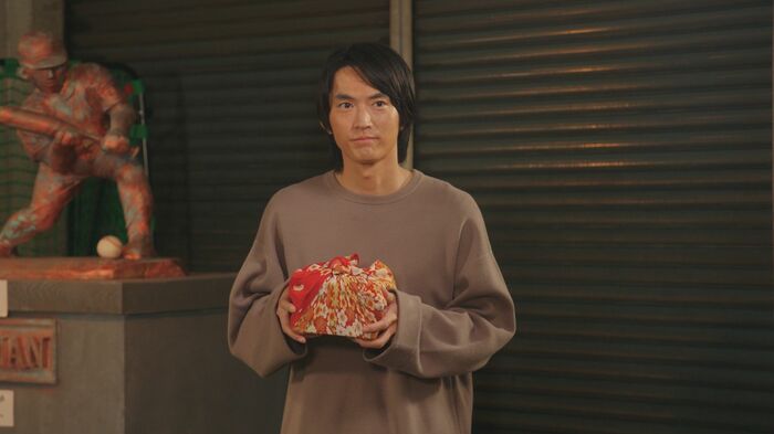 物語は、バントマンたちの作戦室に真鍋(和田雅成)がやって来るところから始まります。中日ドラゴンズから戦力外通告を受け、第二の人生として大学進学を目指す道を選んだ真鍋。大学の下見のため、名古屋から上京したついでに、先輩の大翔(鈴木伸之)に手渡したいと、風呂敷に包まれた「あるモノ」を持ってイニングナイングループ社を訪れます。